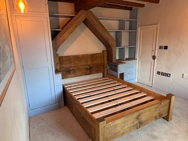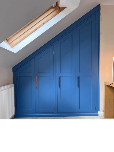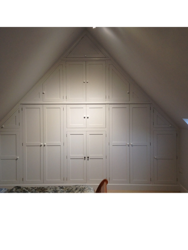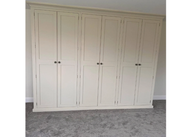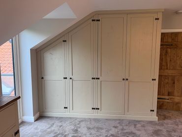 The wardrobes to the right are full height shaker wardrobes, Tulipwood fronts with redwood pine carcase consisting of:
